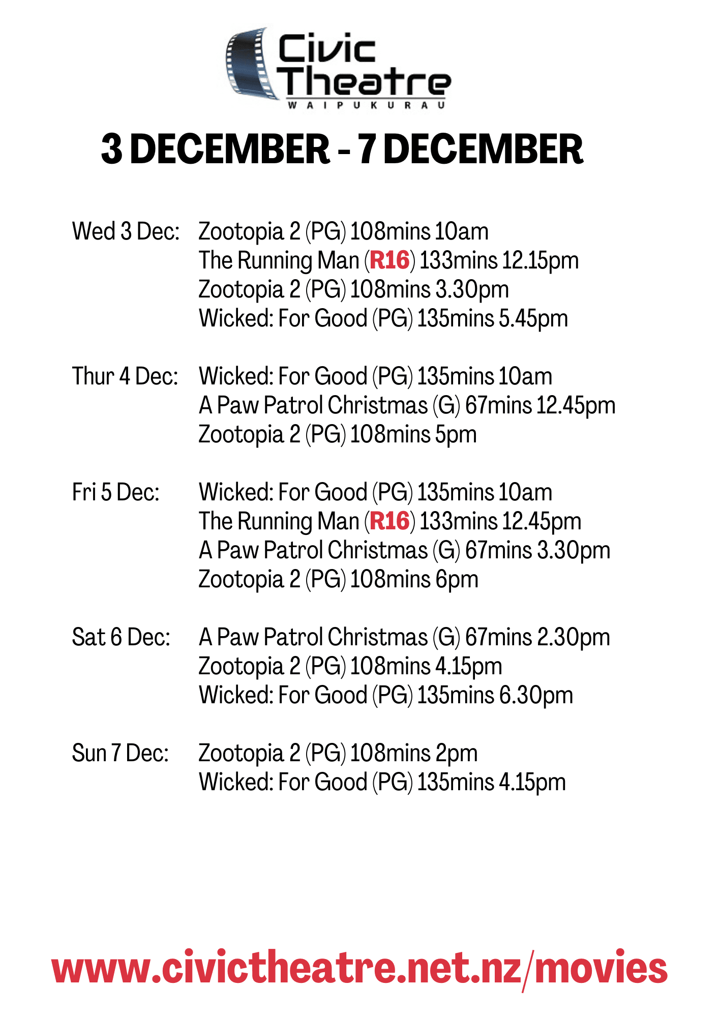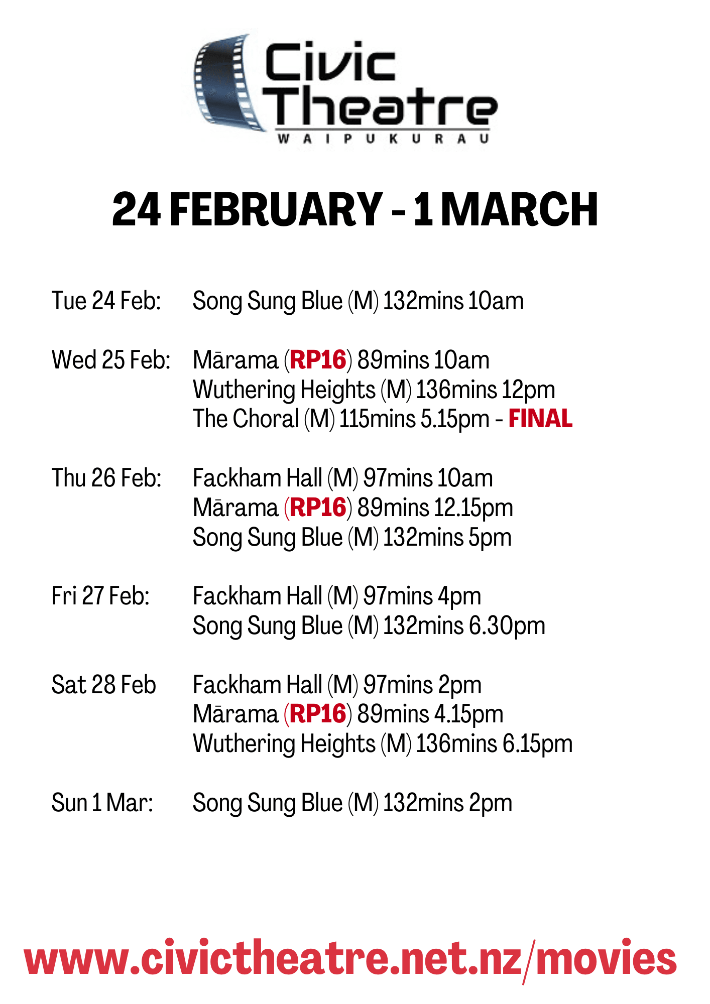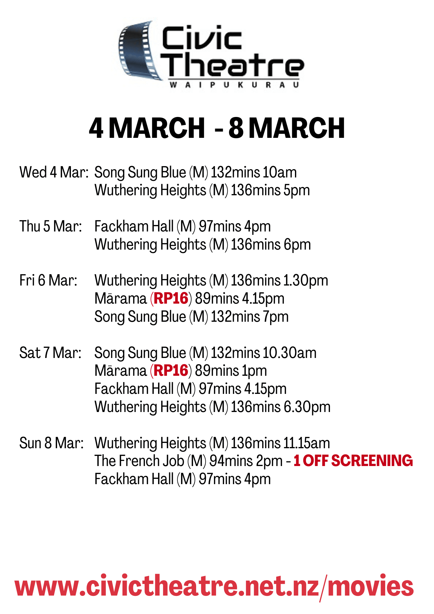 Waipukurau's fully licensed, single-screen cinema, enjoy the latest blockbusters and quality films on our big screen in clear, crisp definition.