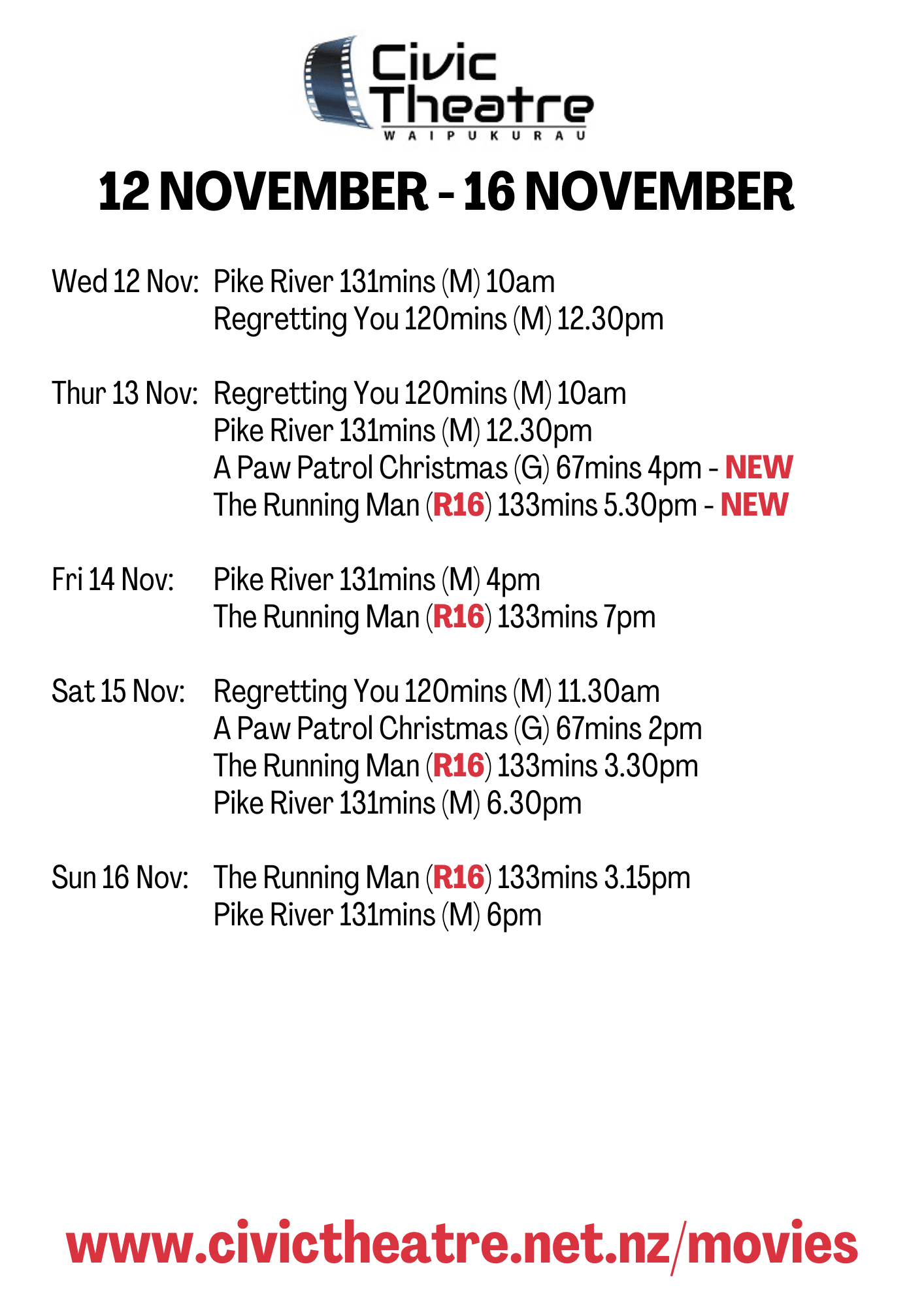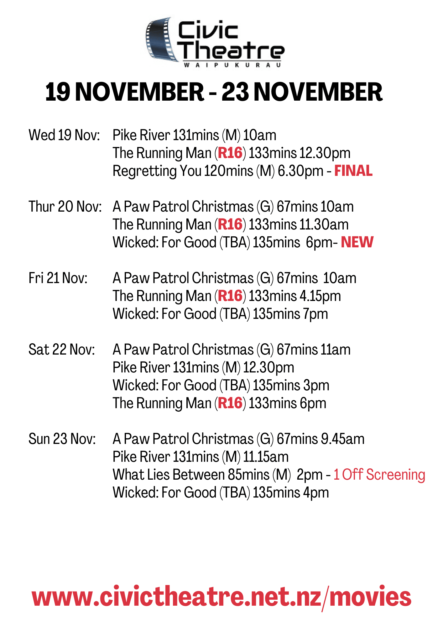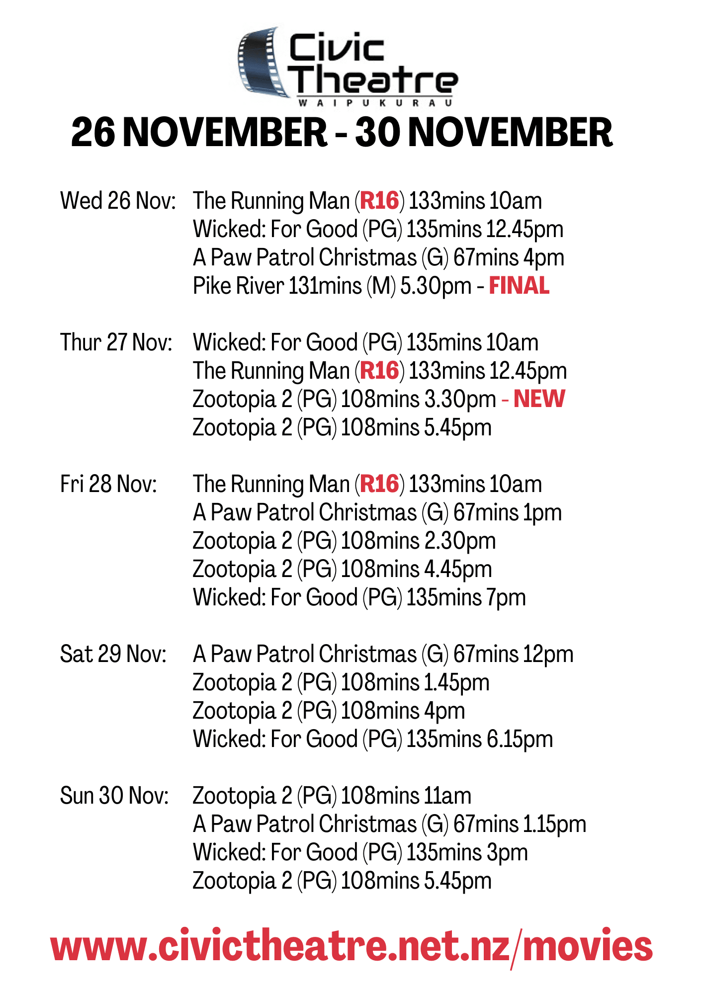 Waipukurau's fully licensed, single-screen cinema, enjoy the latest blockbusters and quality films on our big screen in clear, crisp definition.