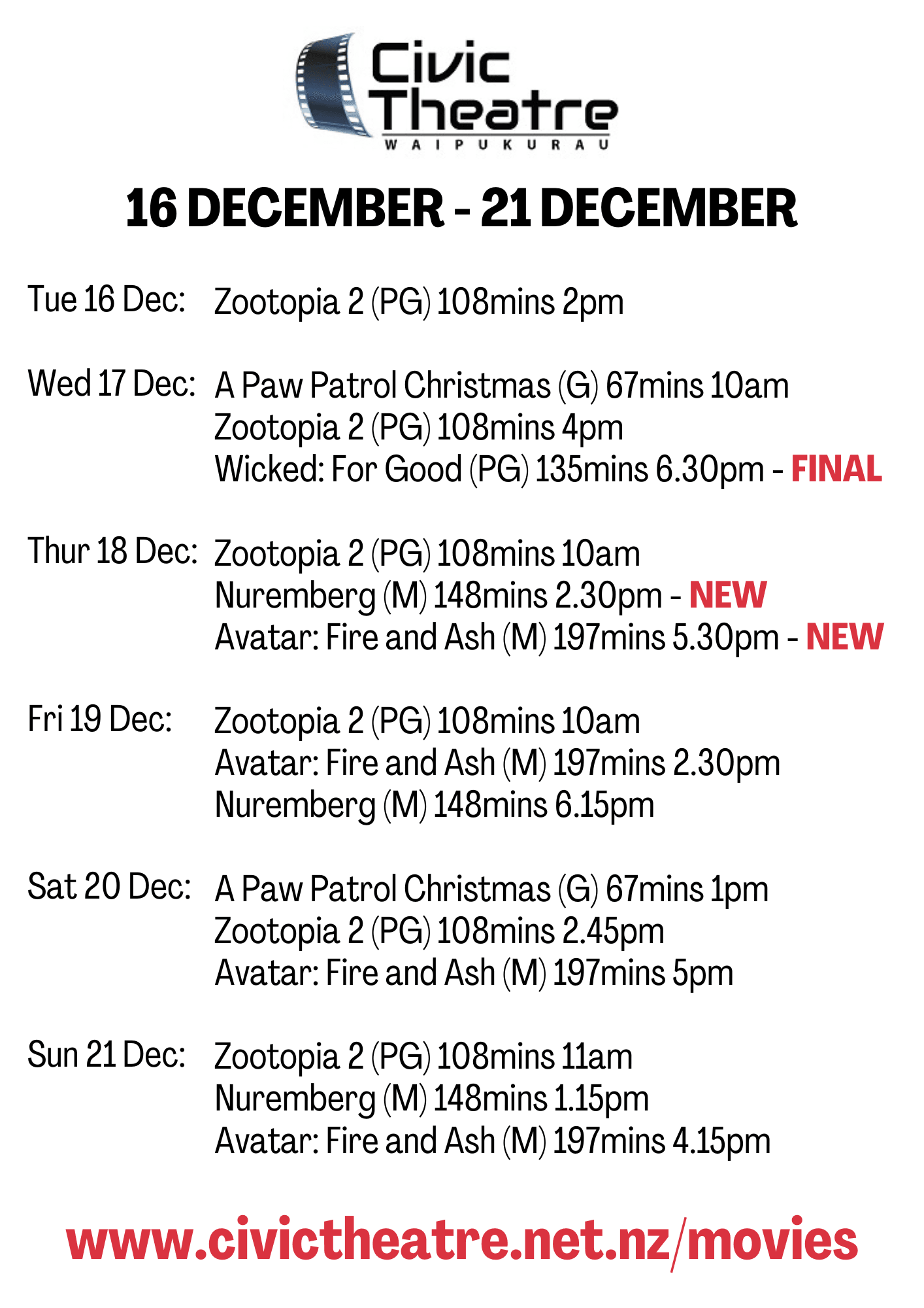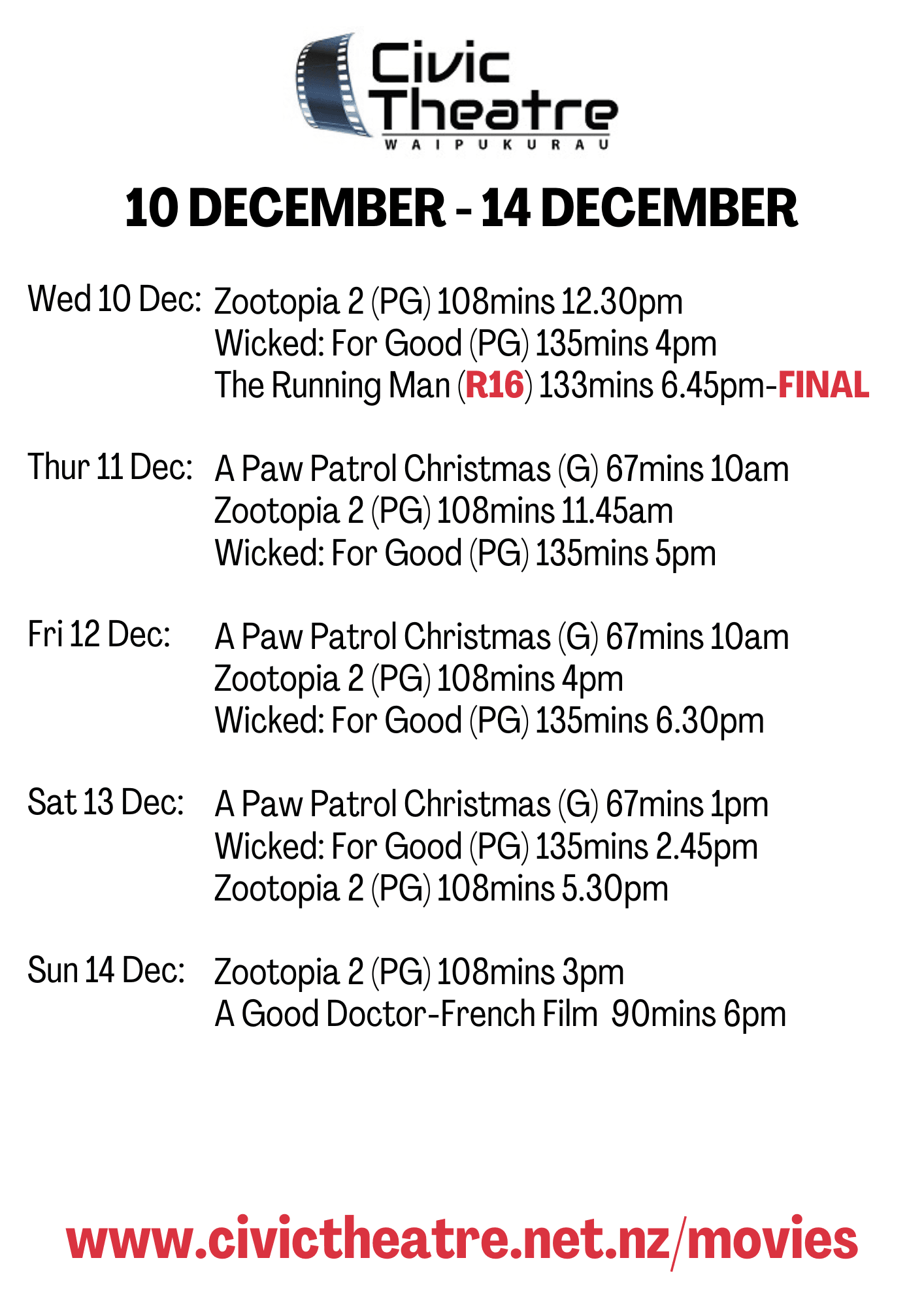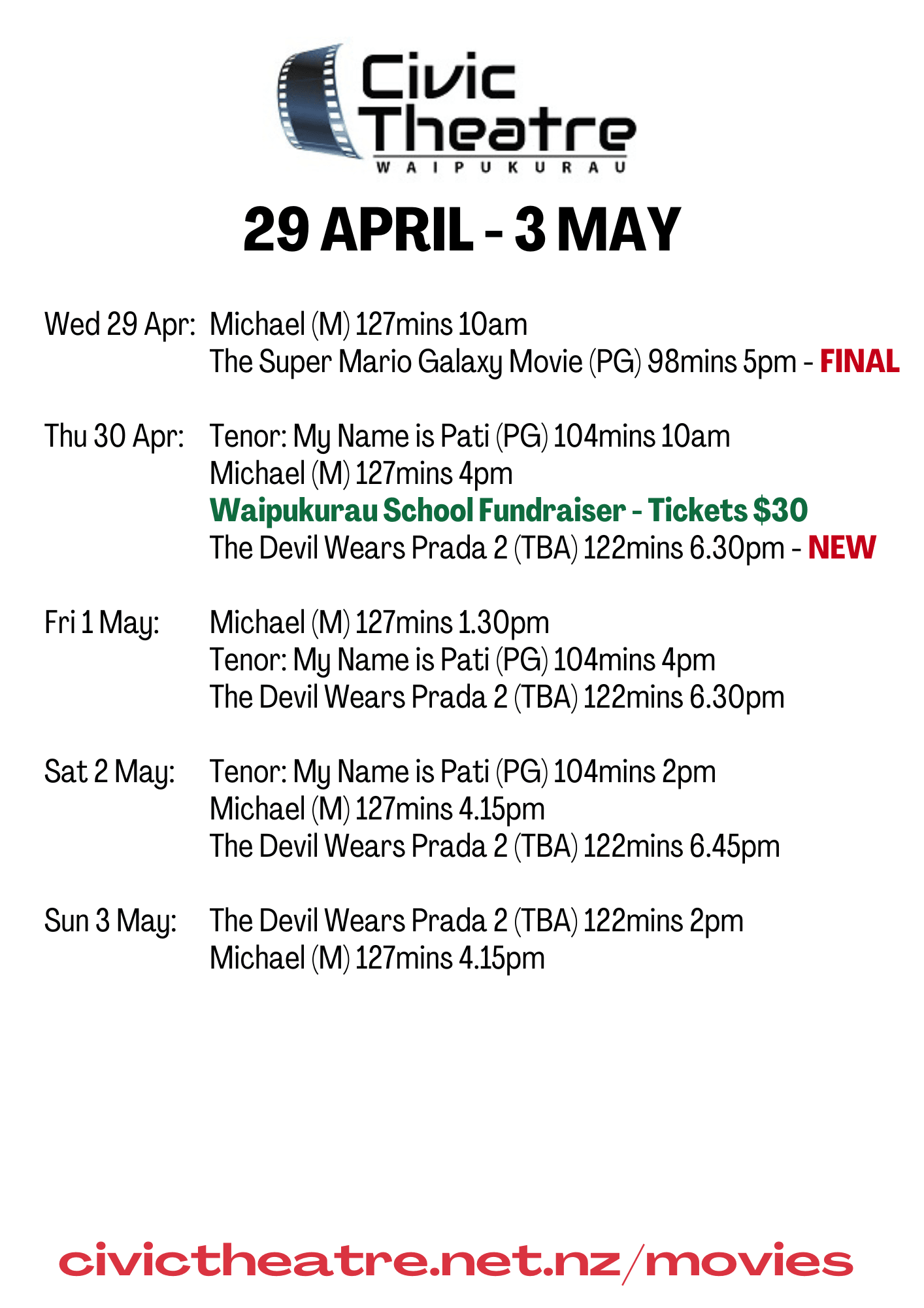 Our screening schedule is lighter than usual over the coming weeks due to solar panel installations on the roof and underground power works on Northumberland Street. We appreciate your patience during this time — and don’t worry, we’ve still got some great upcoming releases on the way!