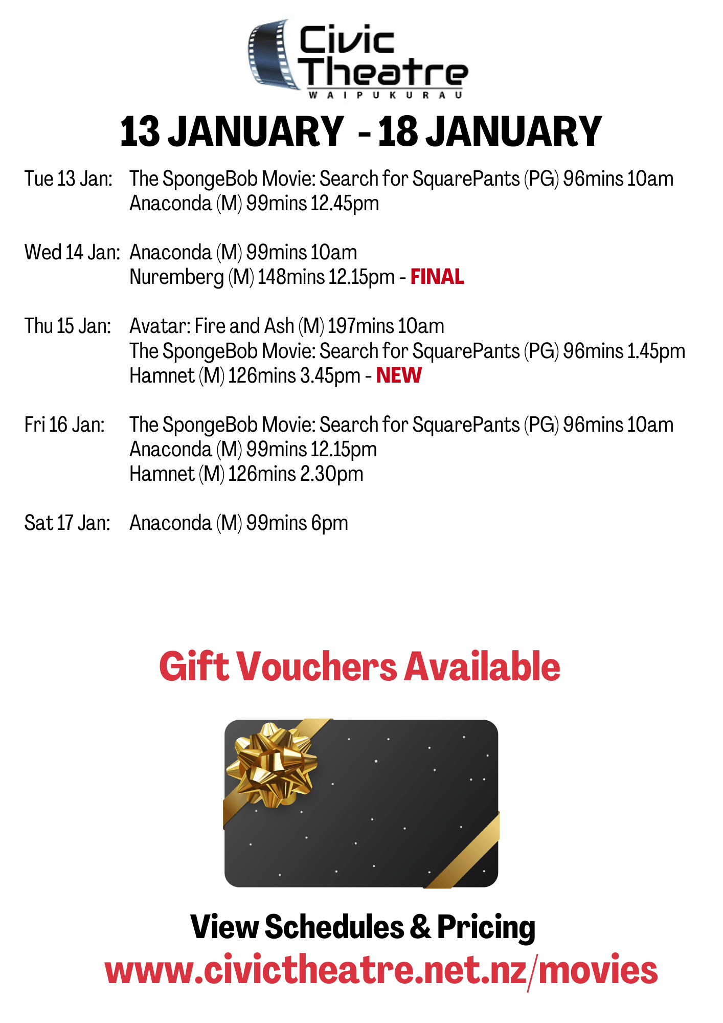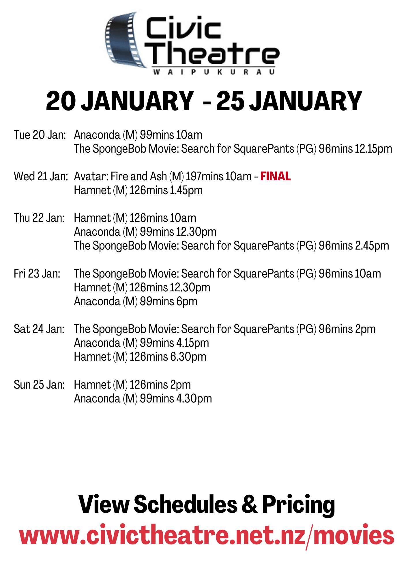 Sign up to our mailing list to receive movie schedules by email